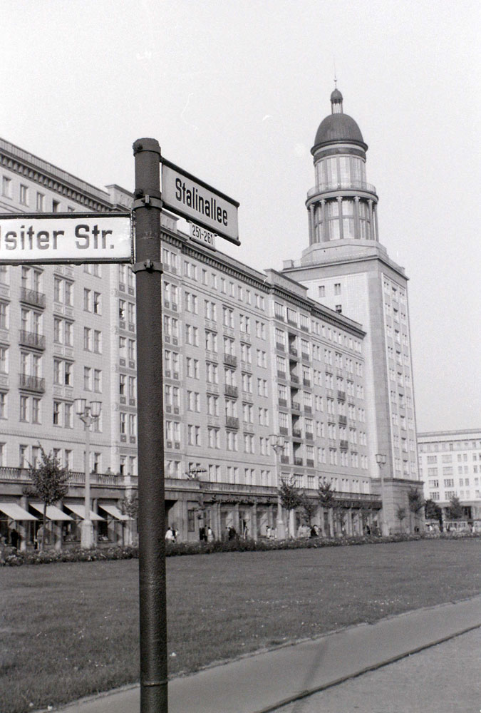 To-day I went to see the Stalin-Allee, the show piece of the East Zone, and it certainly is impressive. Wide, open main street, with pleasantly designed shops and flats along the sides, and lawns along the pavements. Unfortunately, to-day’s weather was dull & overcast, so that I’ve left taking photographs until later.