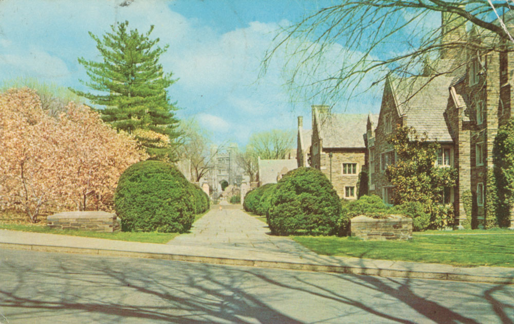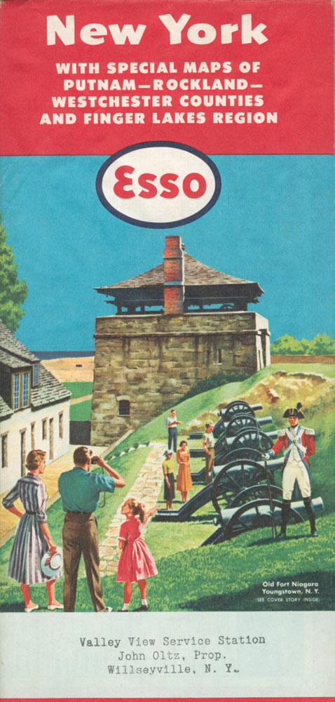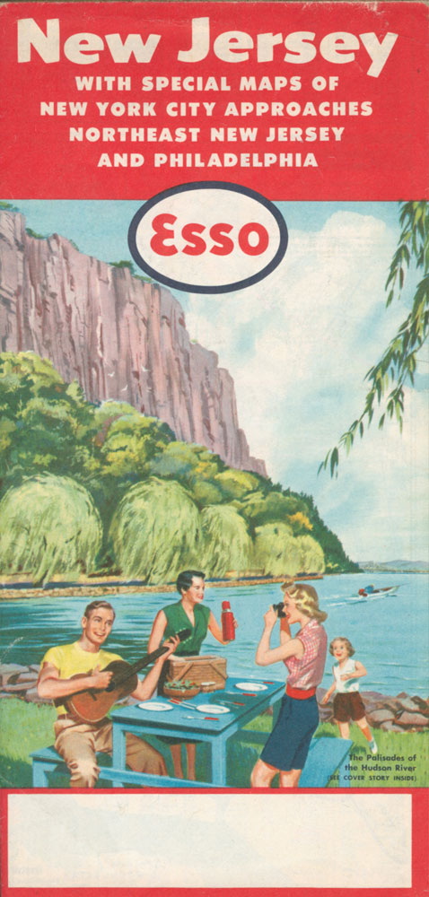 After Ithaca, Henry drove to Princeton, New Jersey. He doesn’t write about his journey to Princeton, however in his souvenir collection there are a number of Esso road maps with wonderful 1950s artwork. These maps were obtainable free of charge from service stations. One map, of New York State, bears a stamp from a service station at Willsayville N.Y., a town between Ithaca and Princeton. This map, and an unstamped one of New Jersey, are shown below (click to enlarge).