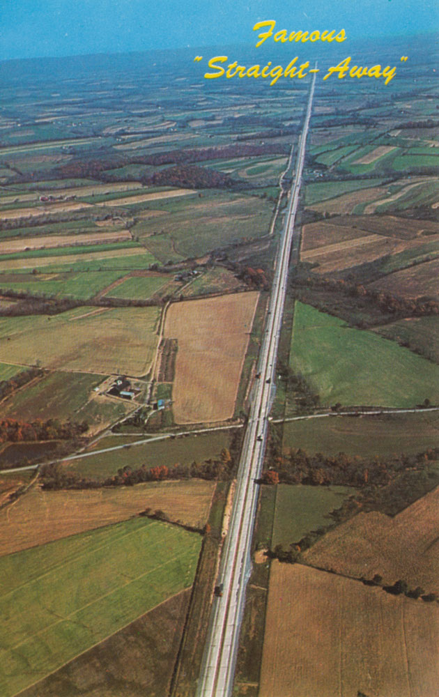 From the museum I went along the Turnpike. This road is 360 miles long and is completely separate from other roads, except at interchanges which are usually some 15 miles apart from each other. It’s enclosed as thoroughly as a railway in England, the only entrances and exits being of the clover leaf type at the interchanges. It goes through the Allegheny Mountains, and in several places there are tunnels. Refreshments and petrol are only served at special stations, which are placed about 30 miles apart from each other. The highway has two lanes on each side of the dividing grass verge. Naturally it’s a toll road, and it costs about 1d per mile per car. I left the turnpike near a small place called Stanton, which I presume was once a farming village, and earns its living now chiefly from the motorists seeking a nights lodging from the Turnpike.