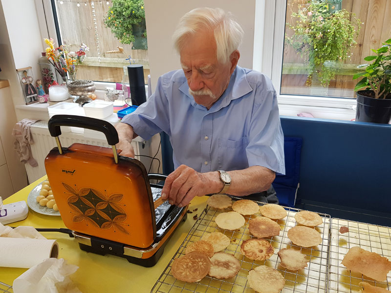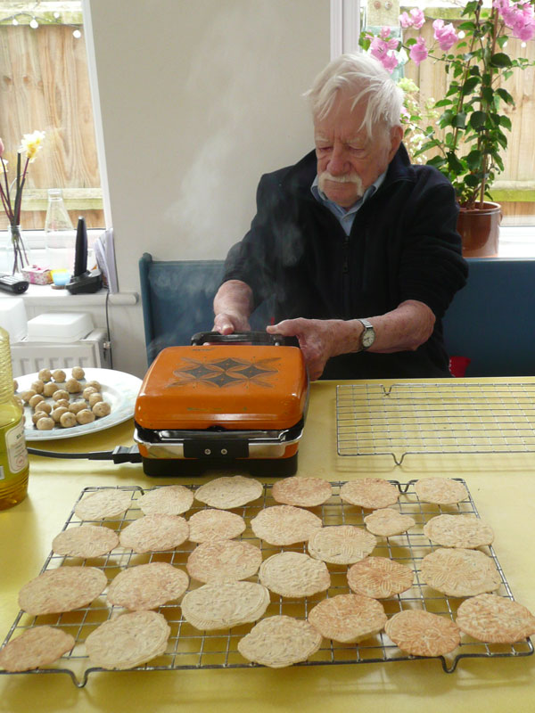 Here is a short video of Henry making Brätzelis and enjoying the wailing sound. This video was made in 2015 when Henry was 88.