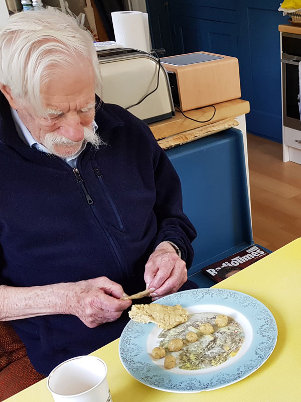 Henry’s culinery skills were limited, menu highlights including spam fritters, baconified beans and Harry potatoes. In the later years of his life, however, he did enjoy helping Katharina make Brätzelis.